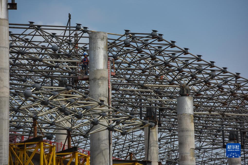 9月27日,建設者在廣州白雲國際機場T3航站樓東北指廊進行屋頂鋼結構施工。
