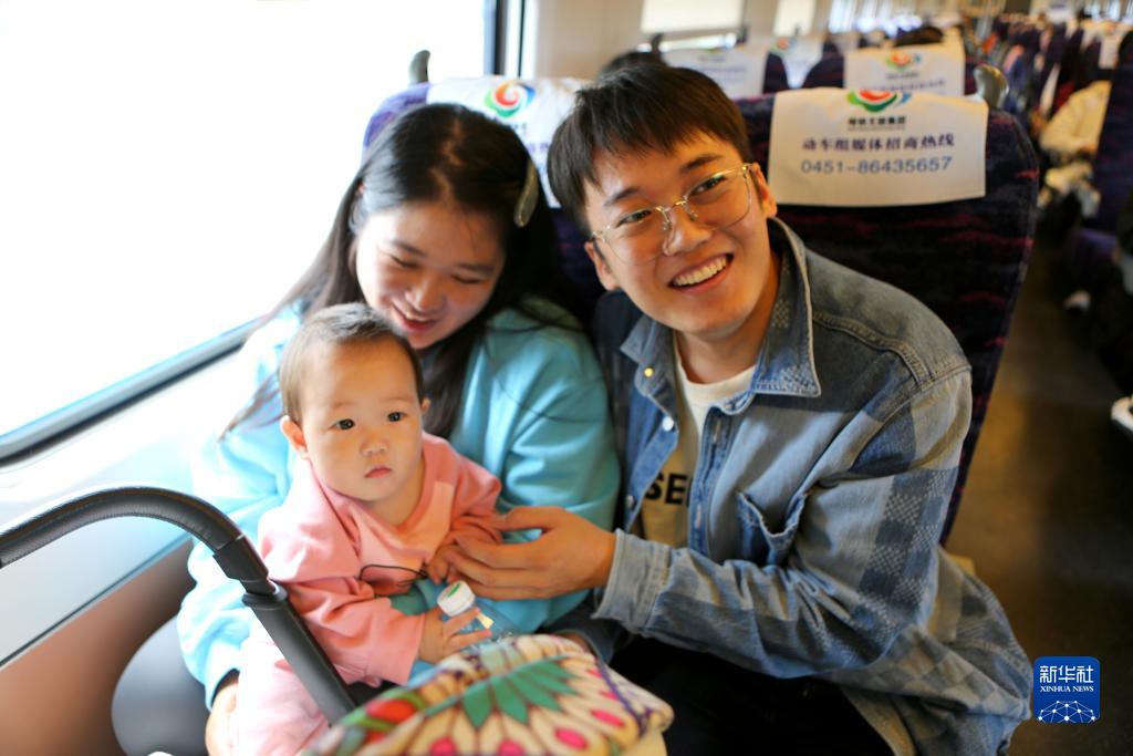 9月27日,旅客乘坐哈爾濱開往佳木斯的動車返鄉過節。
