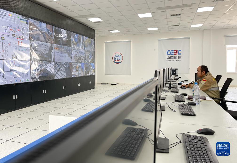 這是9月16日在烏茲別克斯坦撒馬爾罕州拍攝的水泥生産線項目中控室。
