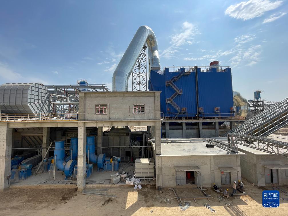 這是9月16日在烏茲別克斯坦撒馬爾罕州拍攝的水泥生産線項目現場。