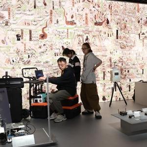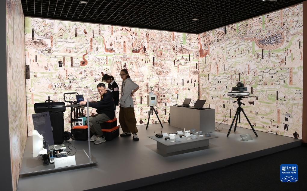 9月27日,工作人員在展廳演示狹小空間文物壁畫監測裝置。
