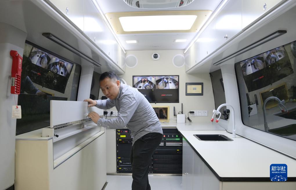 9月27日,工作人員在演示多功能文物保護移動實驗平台。