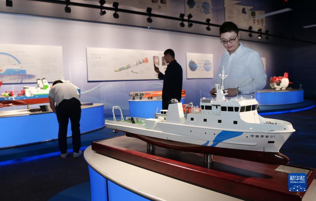9月27日,觀眾在展廳參觀供海洋考古使用的船隻模型。