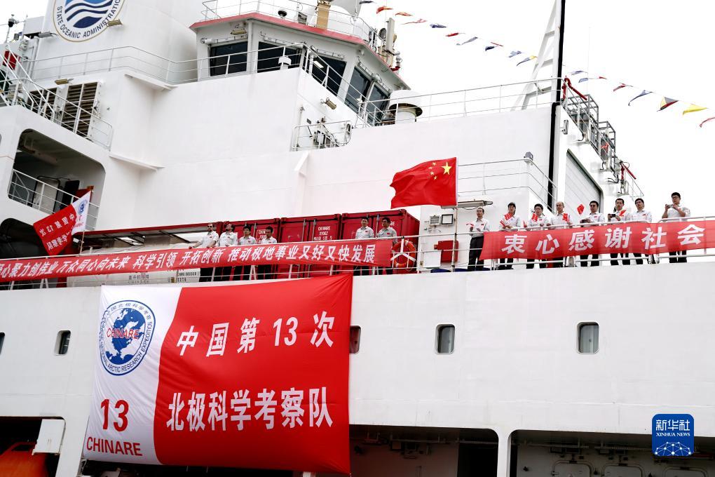 當日,由自然資源部組織的中國第13次北冰洋科學考察隊乘“雪龍2”號極地科考破冰船返回上海,標誌着中國第13次北冰洋科學考察任務圓滿完成。