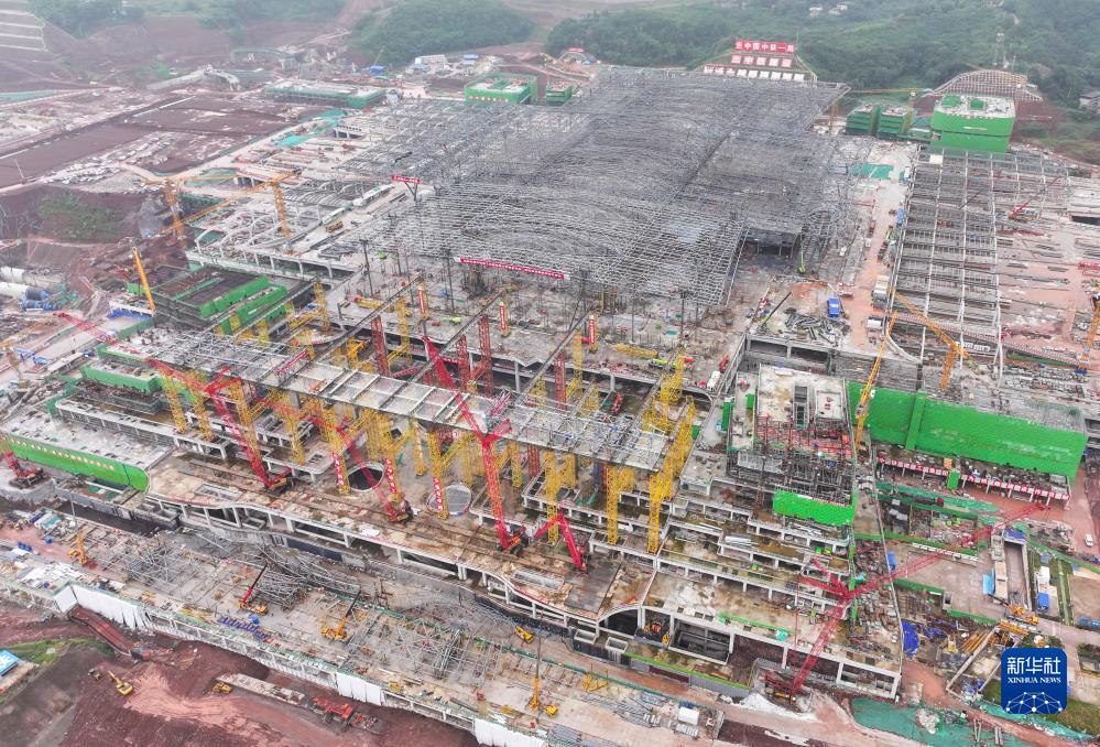 這是9月27日拍攝的重慶東站站房及配套綜合交通樞紐工程施工作業現場(無人機照片)。