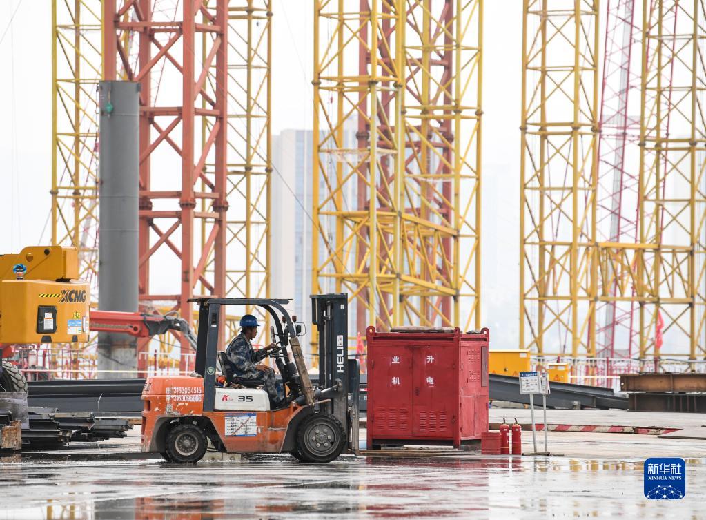 9月27日,中鐵建工工人在重慶東站站房及配套綜合交通樞紐工程二標段項目作業。