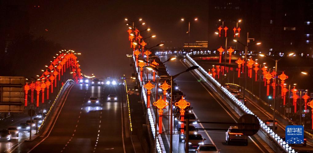 9月26日晚在北京街頭拍攝的“中國結”景觀燈。