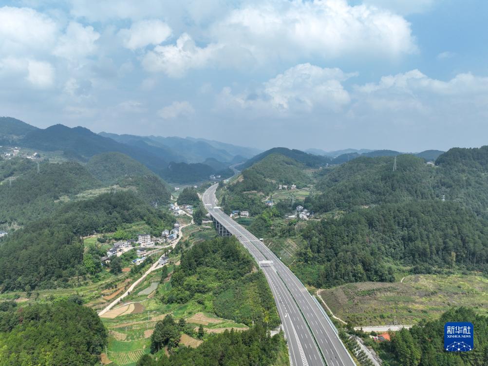 9月28日,在貴州省遵義市境內拍攝的蘭海高速重遵擴容工程新蒲段(無人機照片)。