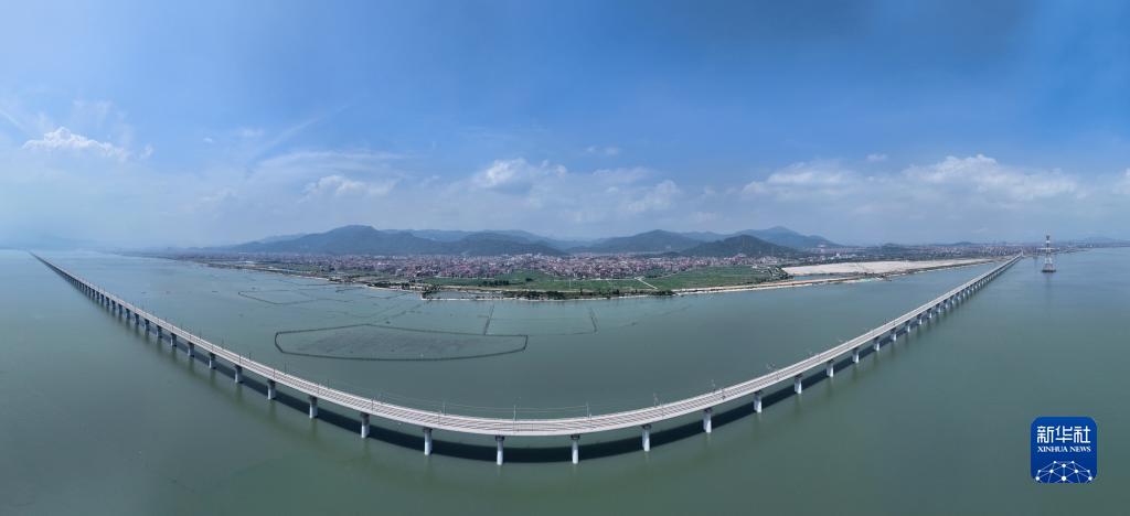 福廈高鐵湄洲灣跨海大橋全景拼接圖(9月15日攝,無人機照片)。