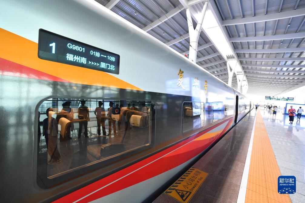 9月28日上午9時15分,福廈高鐵首趟復興號智能動車組G9801次列車從福州南站緩緩開出,一路南下,奔向廈門北站。這標誌着中國首條時速350公里跨海高鐵——福廈高鐵正式開通運營。福廈高鐵北起福州,途經莆田、泉州,南至廈門和漳州,全長277公里。開通後,福州至廈門的列車運行時間將從現在的2小時左右縮短至1小時以內,兩地間形成“一小時生活圈”。