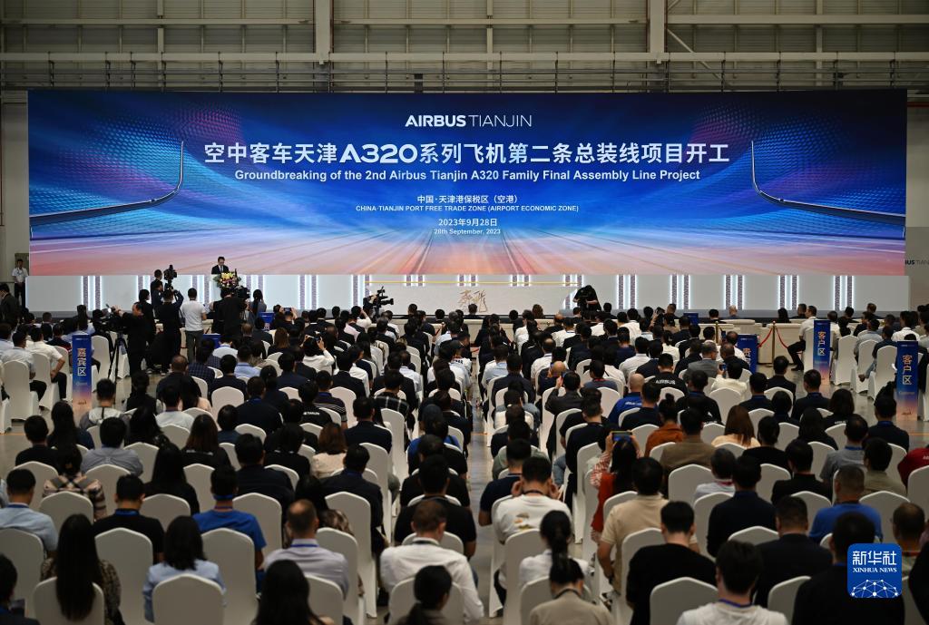 當日,空中客車在中國投資建設的第二條A320系列飛機總裝線,在天津破土動工。項目計劃於2025年底竣工並投入運營。第二條總裝線將進一步增加空客天津A320和A321飛機的總裝能力。