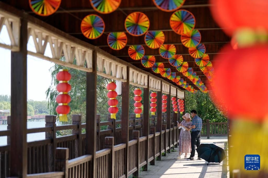 9月28日,市民在河北省樂亭縣古灤河生態公園內游覽。