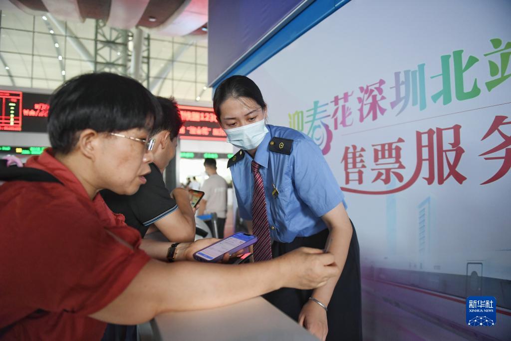 9月28日,工作人員在深圳北站為旅客服務。
