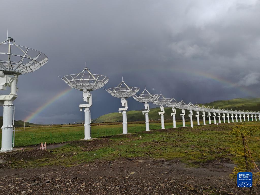 彩虹橫跨圓環陣太陽射電成像望遠鏡(2023年8月27日攝)。