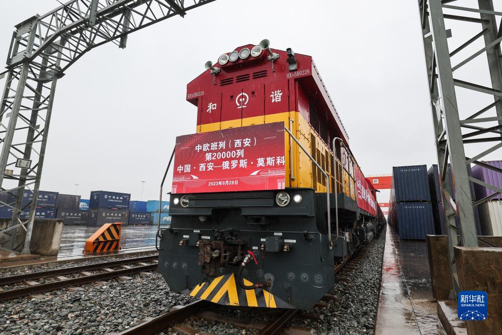 9月28日上午,滿載着165輛汽車的X8489次中歐班列從西安國際港站緩緩駛出,一路向西開往俄羅斯首都莫斯科,標誌着陜西中歐班列自2013年開行首列以來,已累計開行突破20000列。今年以來,陜西中歐班列開行3946列,較去年同期增長29.7%。