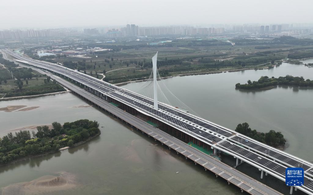 這是9月28日拍攝的石家莊滹沱河特大橋(無人機照片)。