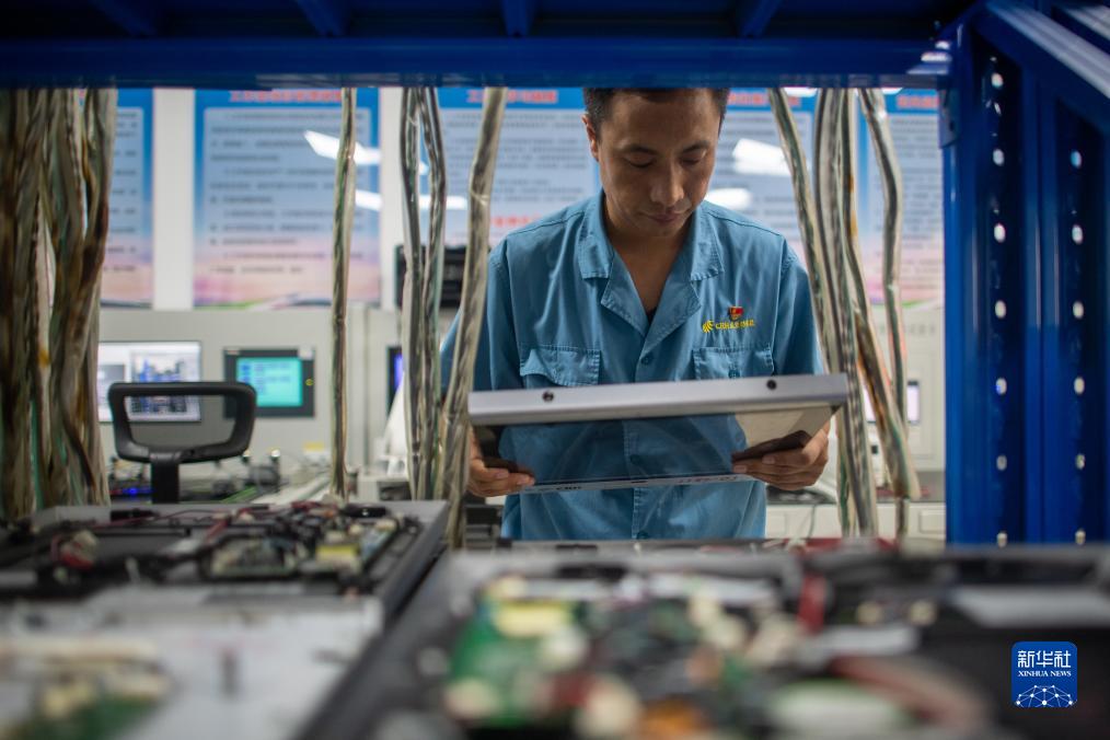 馬耀鋒在檢查動車組故障配件的修復情況(9月27日攝)。