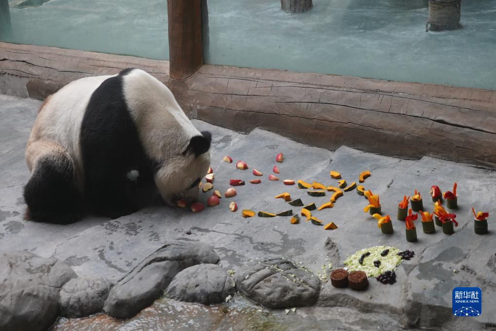 9月29日是中秋節,在位於青海省西寧市城西區的西寧熊貓館,飼養員為館裏的4隻大熊貓準備了豐盛的節日大餐,包括用玉米、黃豆等食材制做的月餅,以及蘋果、葡萄、南瓜等食物。