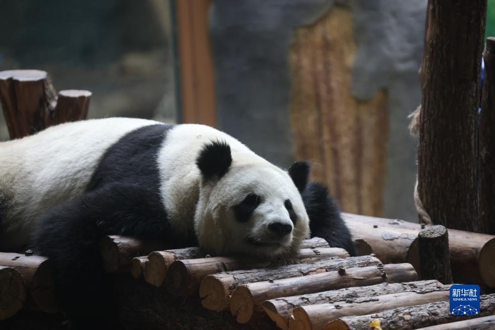 9月29日,西寧熊貓館的一隻大熊貓在休息。