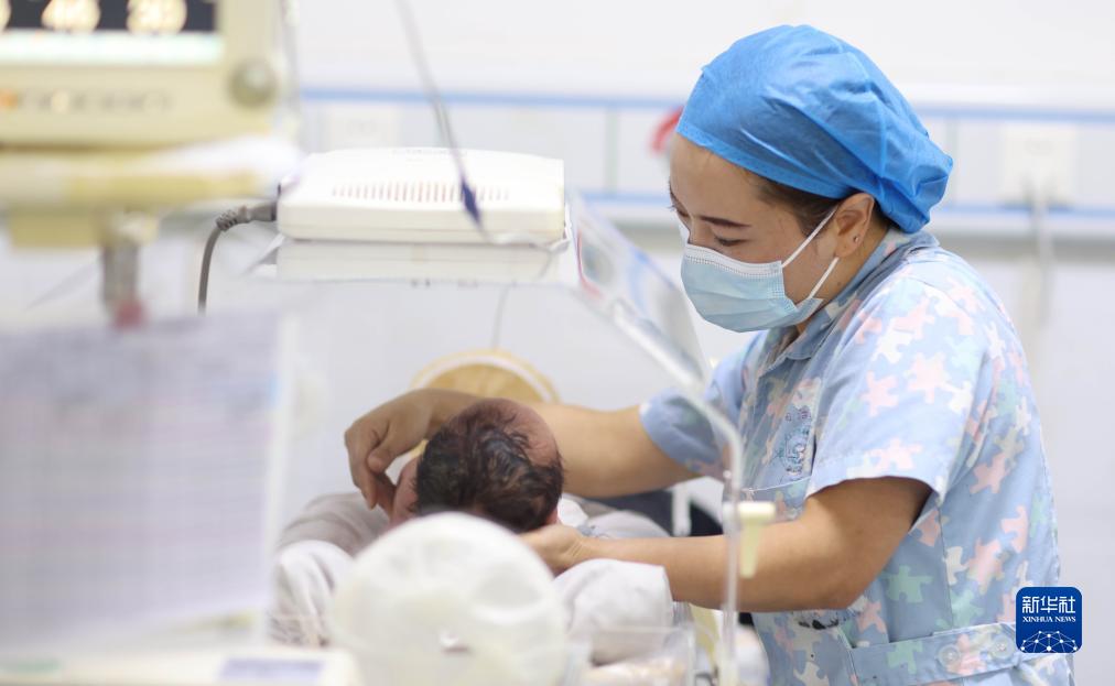 9月29日,醫護人員在貴州省銅仁市玉屏侗族自治縣人民醫院護理新生兒。