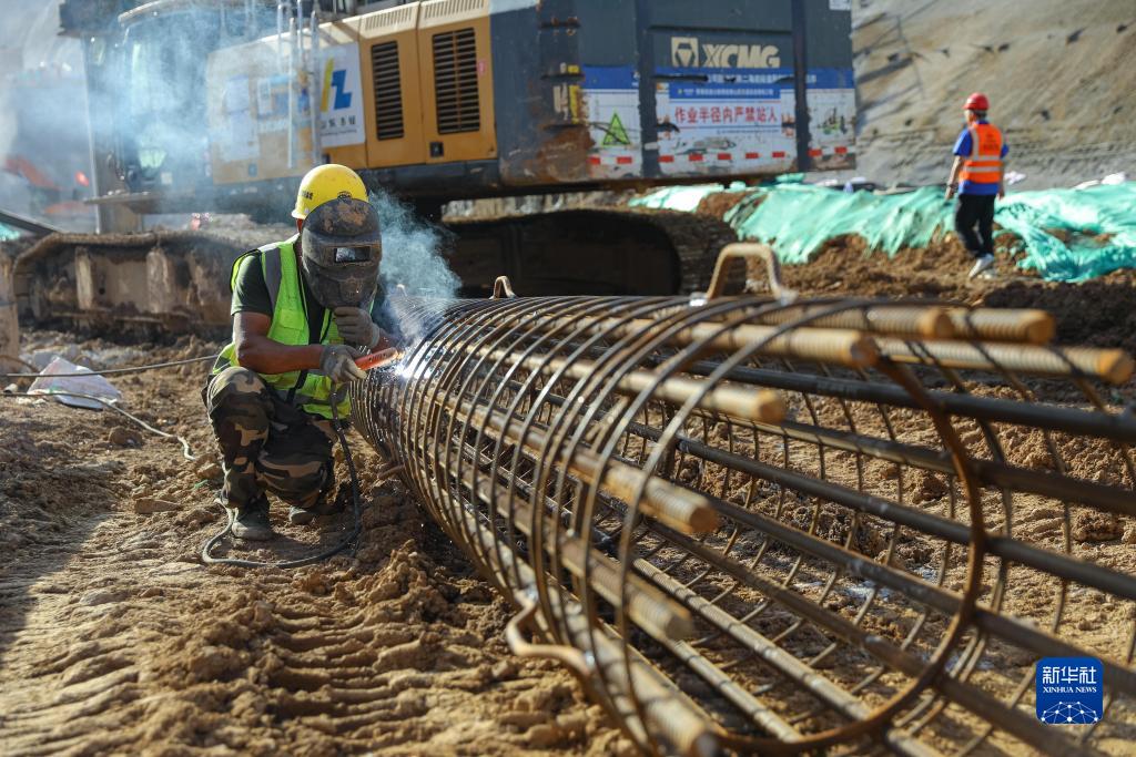 9月29日,位於山東省青島市的青銀高速公路增設唐山路互通及連接線工程唐山路隧道施工現場,工人在焊接鋼筋籠。