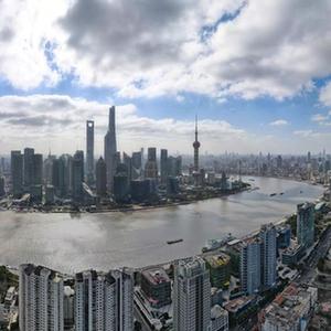 從上海虹口區北外灘空中俯瞰中國(上海)自由貿易試驗區陸家嘴片區(2023年1月10日攝,無人機全景照片)。