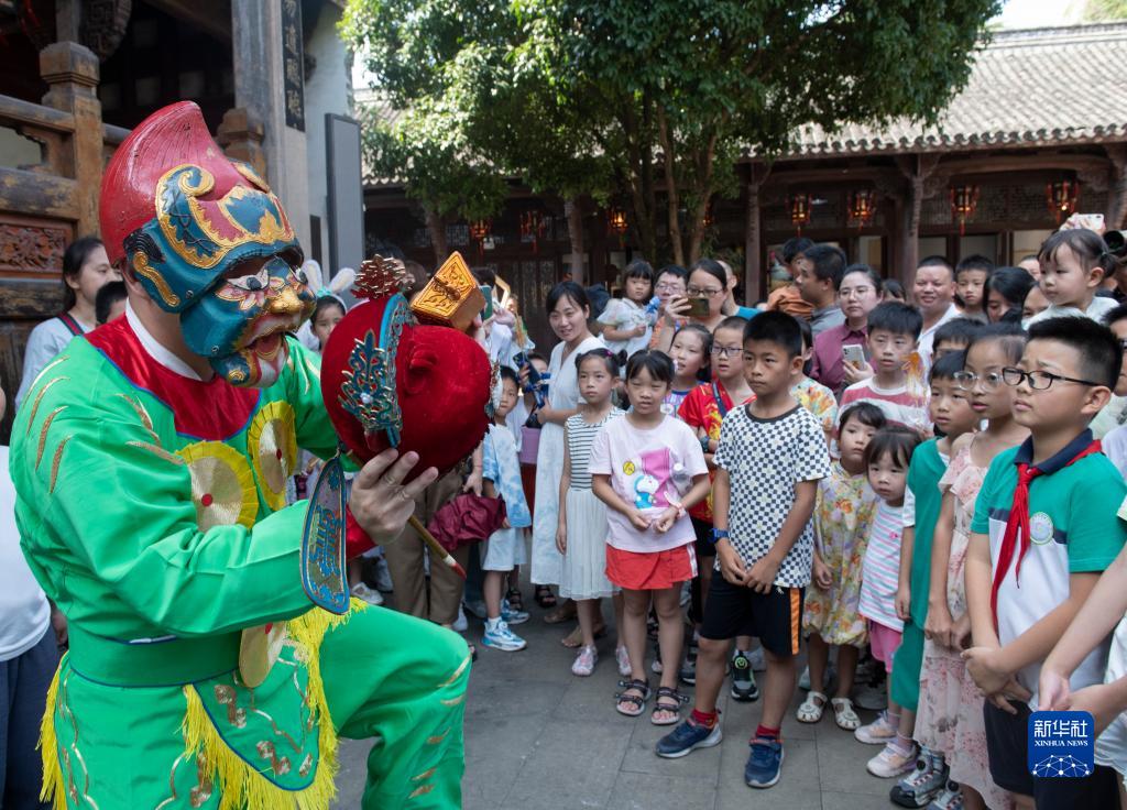 9月29日,在浙江省金華市非遺館,浙江婺劇藝術研究院演員在表演婺劇片段《點魁星》。