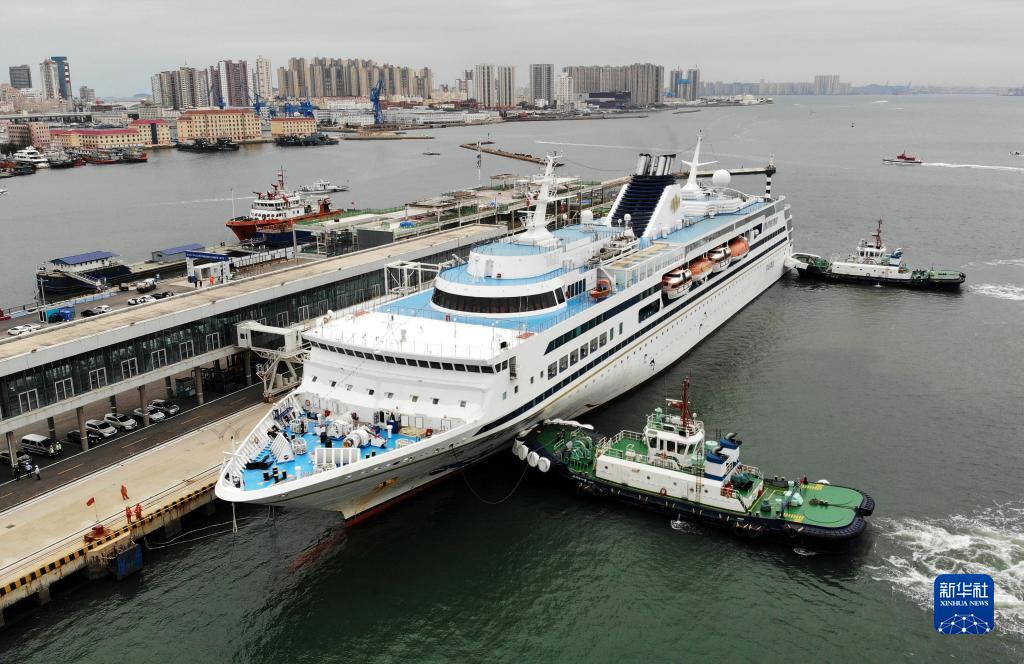 當日,“藍夢之星”號郵輪從青島拔錨起航,載着近千名游客踏上青島-韓國濟州-上海的旅程,標誌着青島郵輪旅游復航。
