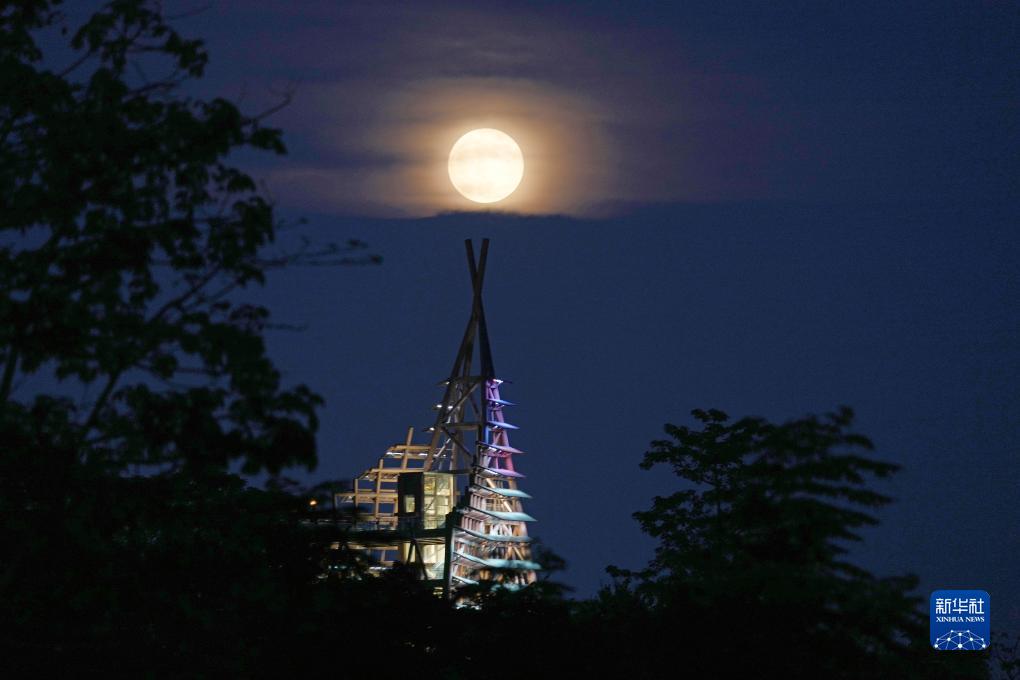 這是9月29日在廣西南寧園博園拍攝的月亮。
