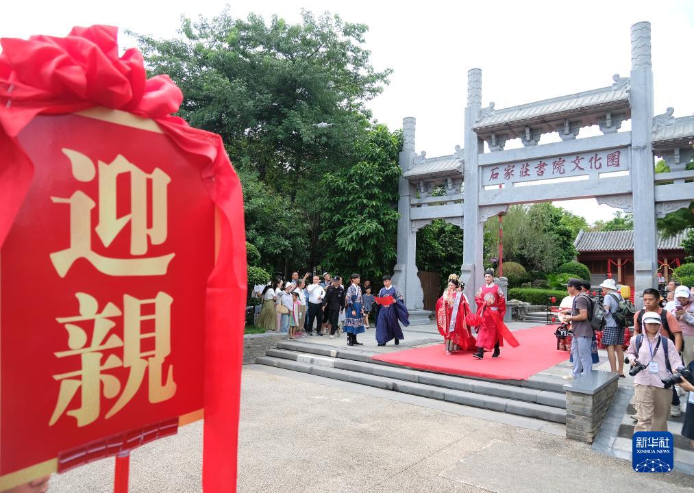 9月29日,演員在廣西南寧園博園表演中式婚禮。