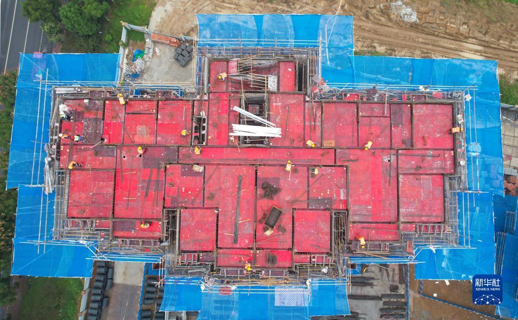 9月30日,中建二局工人在安徽合肥肥西産城融合安置點二期工地作業(無人機照片)。