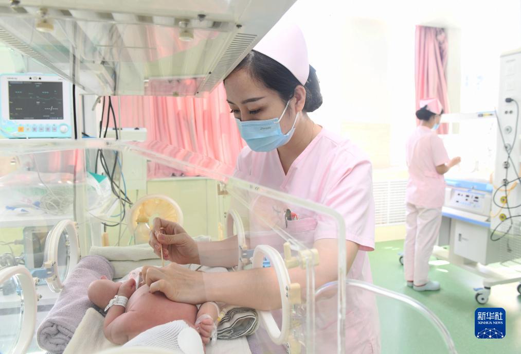 9月30日,河北省新樂市醫院新生兒科護士在護理新生兒。