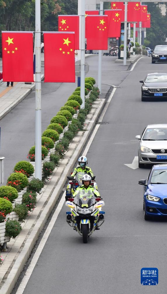 9月30日,在安徽省合肥市,交警蜀山大隊鐵騎中隊在南一環開展路面巡查,守護市民假期平安出行。