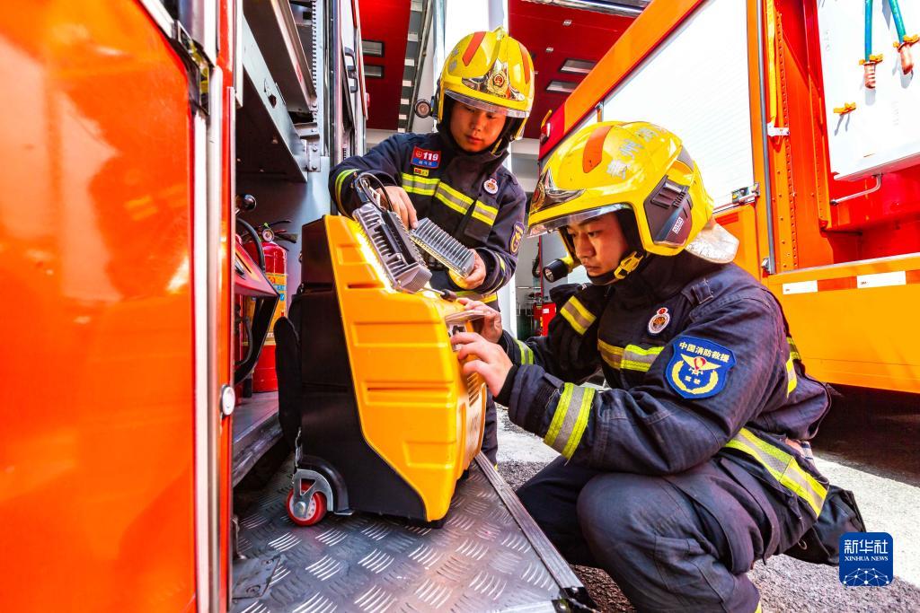9月30日,消防救援人員在貴州省安順經濟技術開發區消防救援大隊檢查裝備。