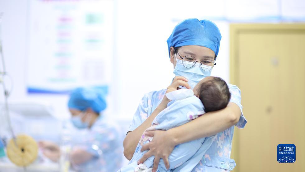 9月30日,貴州省銅仁市玉屏侗族自治縣人民醫院新生兒科醫護人員在護理新生兒。
