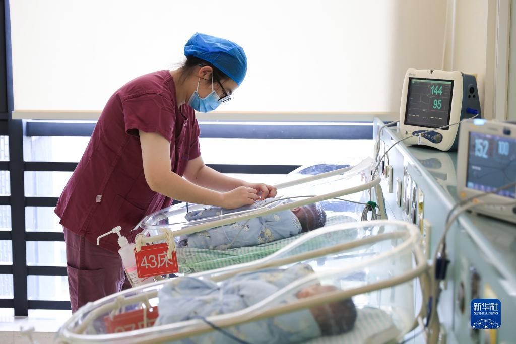 9月30日,在江蘇省婦幼保健院,護士在護理新生兒。
