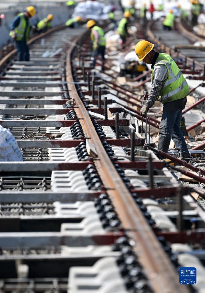 9月30日,中國中鐵十局的建設者在津靜市域(郊)鐵路工程建設現場施工。