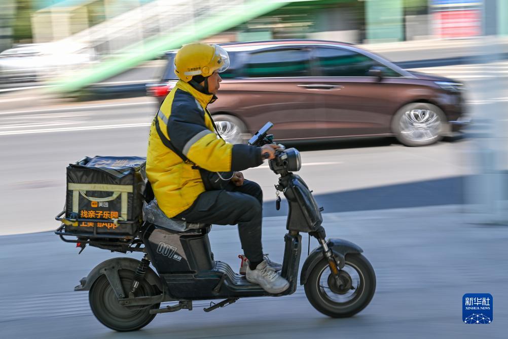 9月30日,在新疆烏魯木齊市新醫路,一名外賣小哥為顧客送餐。