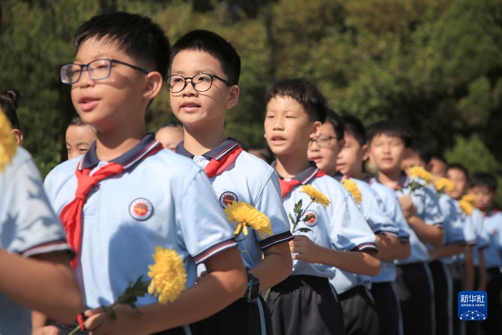 9月30日,少先隊員在福建省龍岩市閩西革命烈士陵園參加烈士紀念日活動。