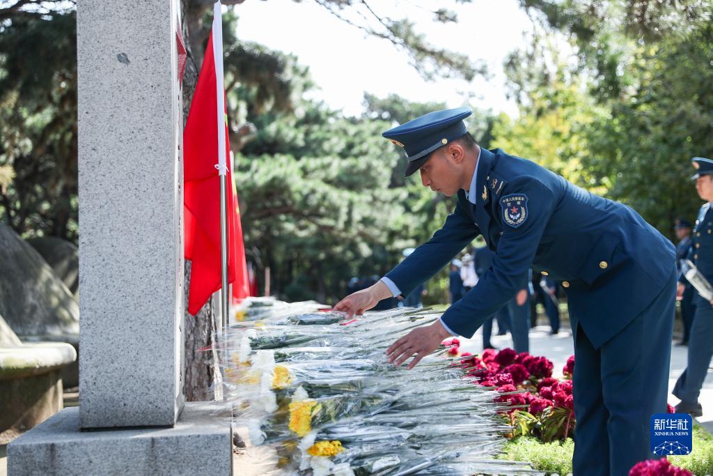 9月30日,在瀋陽抗美援朝烈士陵園,解放軍戰士向烈士獻花。