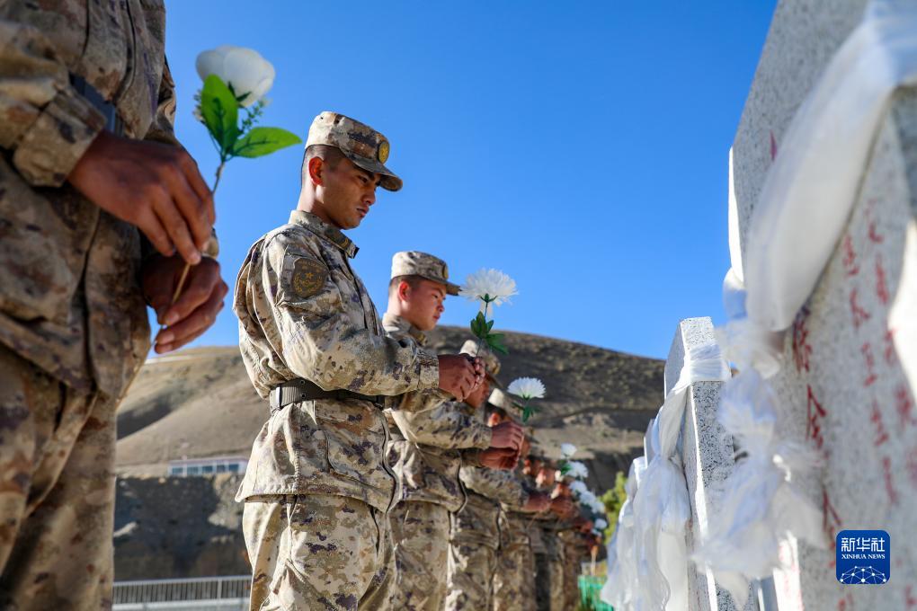 9月30日,駐守在“生命禁區”的阿里軍分區某邊防團普蘭邊防連開展“緬懷革命先烈,弘揚先遣精神”主題活動,組織官兵前往普蘭縣烈士陵園祭奠先烈。