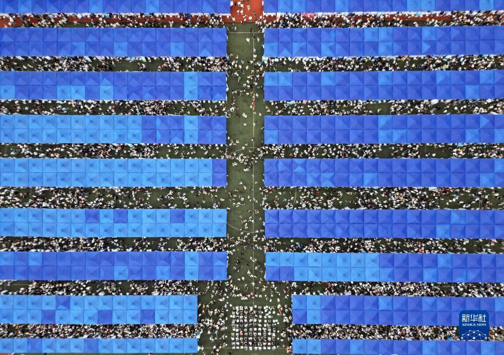 9月26日,“勇往‘職’前 逐夢未來”2024屆上海高校畢業生秋季校園招聘會在上海建橋學院舉辦。本場招聘會有近1100家用人單位參與招聘,提供崗位5000余個,招聘需求人數約25000名(無人機照片)。