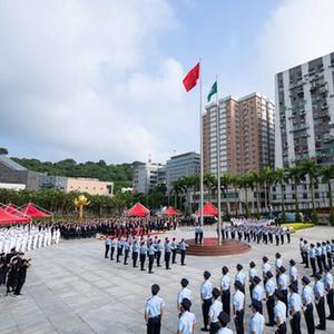 10月1日,澳門特別行政區政府在金蓮花廣場隆重舉行升旗儀式,慶祝中華人民共和國成立74周年。