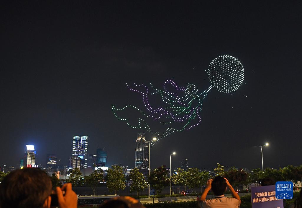9月30日,無人機在維港上空拼成“嫦娥奔月”造型。