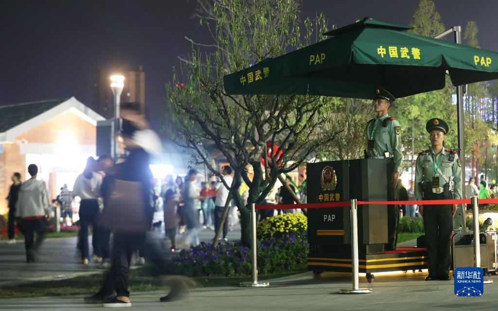 在第十四屆中國(合肥)國際園林博覽會現場,武警安徽總隊合肥支隊官兵在重點區域站崗執勤(9月30日攝)。