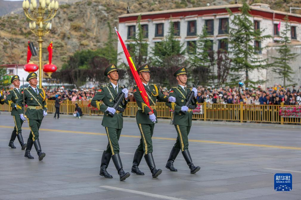 10月1日上午,西藏自治區慶祝中華人民共和國成立74周年“升國旗、唱國歌”儀式在拉薩布達拉宮廣場舉行。