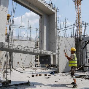 10月1日,工人在位於上海的中建三局一公司華東公司某建設工地施工。