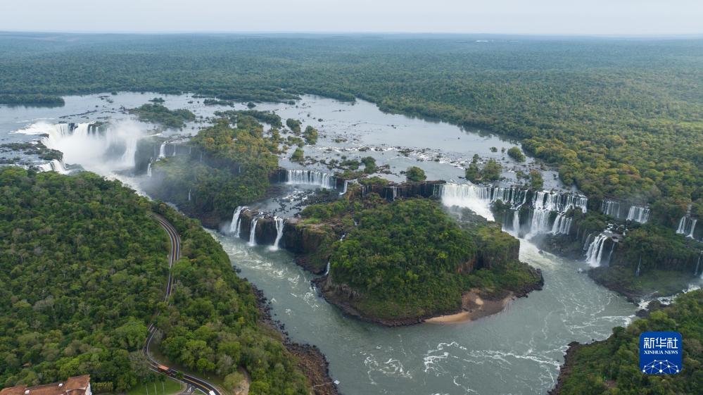 這是9月29日在巴西巴拉那州拍攝的伊瓜蘇大瀑布(無人機照片)。