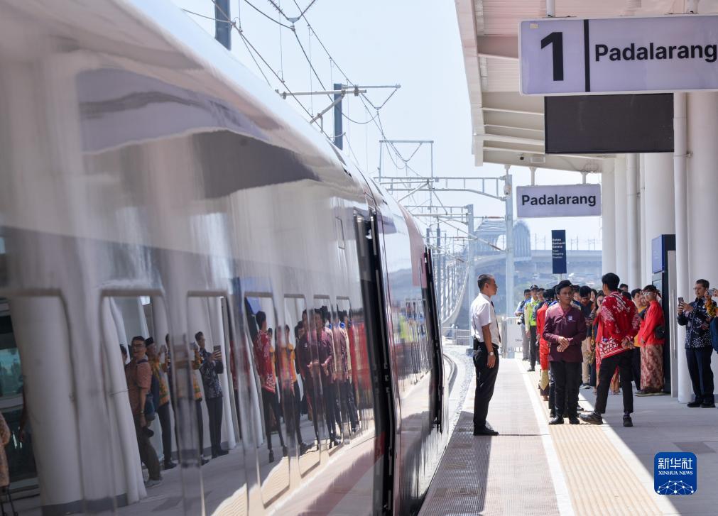 10月2日,一列雅萬高鐵動車組停靠在印度尼西亞帕達拉朗車站。