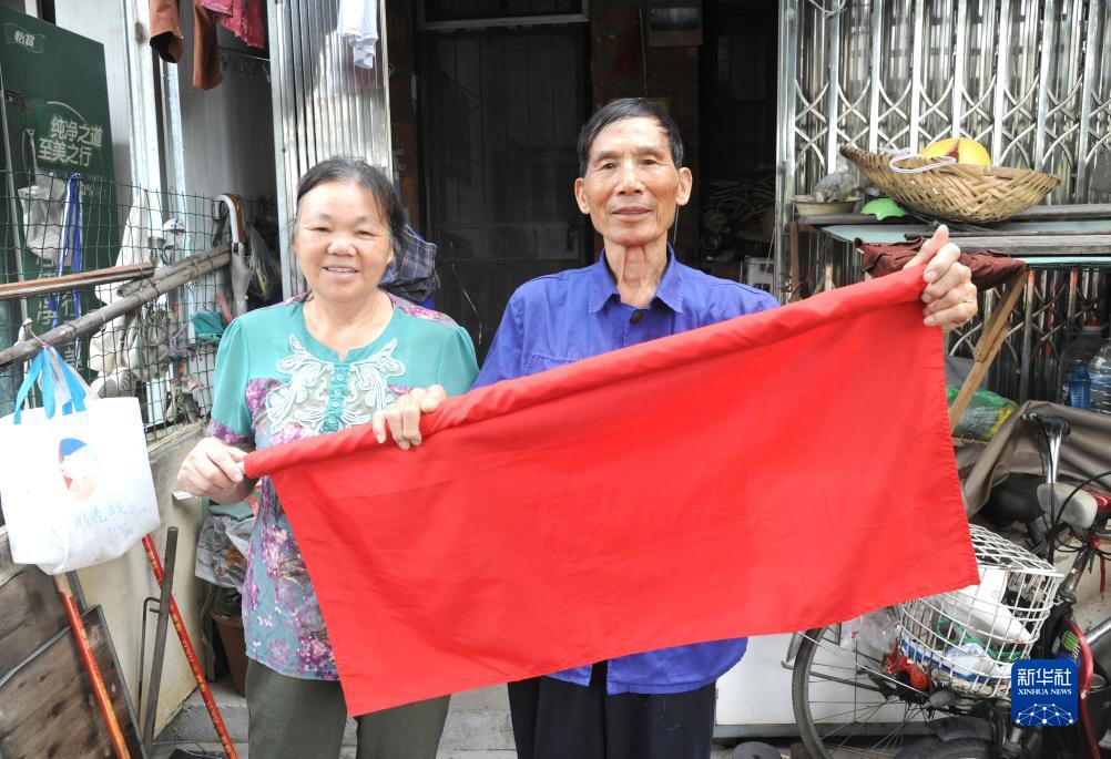 當日,83歲的梁樂老人和愛人又一次在廣西柳州市自己家門口升起了國旗。有着50餘年黨齡的梁樂從1994年至今,堅持每天在家門口升國旗。國旗換了20多面、旗桿斷了十幾根,升旗、降旗的動作重復了29年。今年的國慶節,受柳州市柳南區河西街道辦事處宏都社區邀請,梁樂為舉行升旗儀式的吉祥苑小區升旗。數十名居民一起見證了這場“家門口”的升旗儀式。